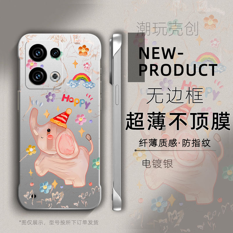 适用于OPPORENO13手机壳12PRO快乐大象油画涂鸦11超薄无边框RENO10新款RENO9半包边10创意FINDX8个性X6硬壳