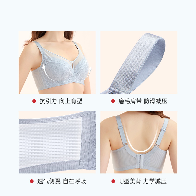 润微提拉女王内衣女夏薄款大胸显小无痕大码调整防下垂粉底液文胸