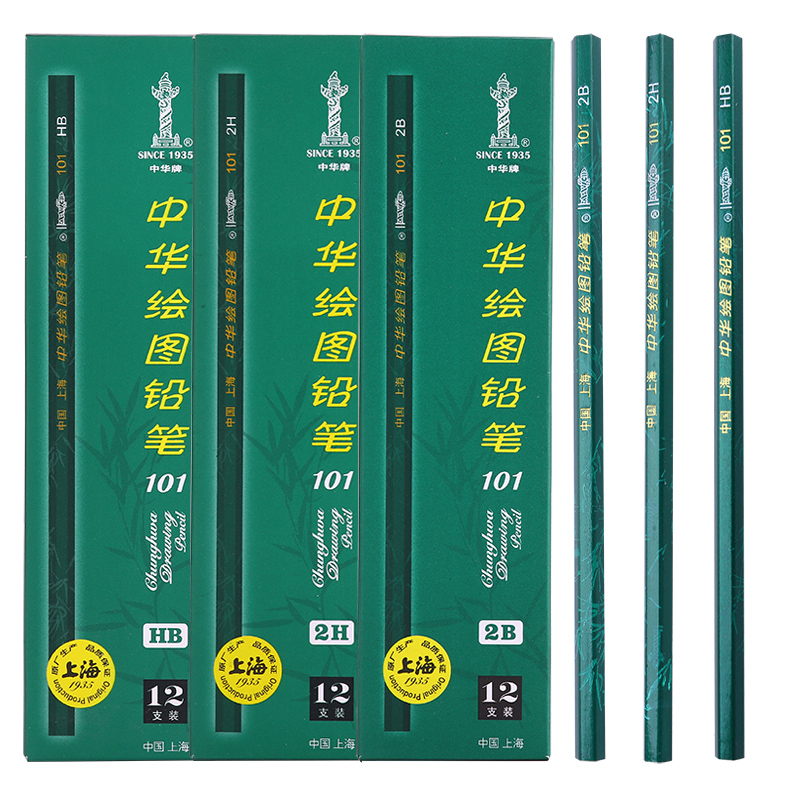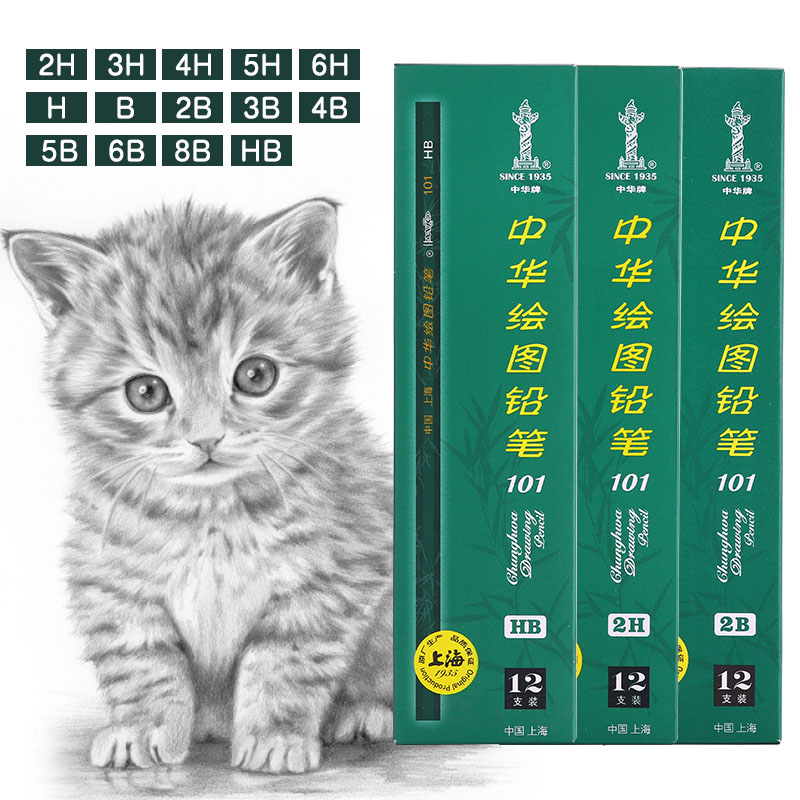 中华铅笔HB/2H/3H/2B/3B/4B/5B/6B学生绘图素描写字画画木头铅笔
