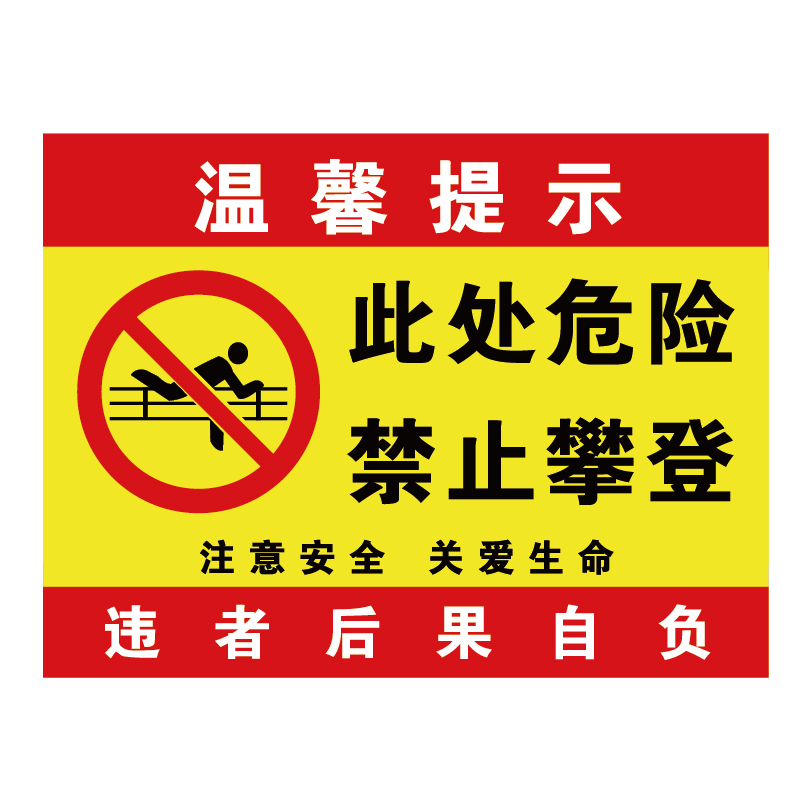 禁止攀爬标识牌此处水深严禁攀登翻越护栏高压危险警示牌轨道区域禁止跨越提示牌户外反光铝板提示PVC板定制