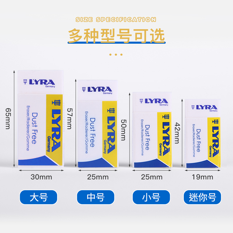 德国LYRA艺雅天琴洁净橡皮擦小学生专用开学儿童铅笔美术考试绘画干净不留痕擦字成线学习少屑神器干净超大号