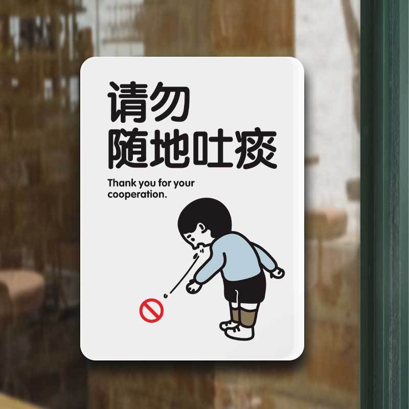 请勿随地吐痰警示牌禁止乱扔垃圾提示牌小心烟头贴牌创意风门牌