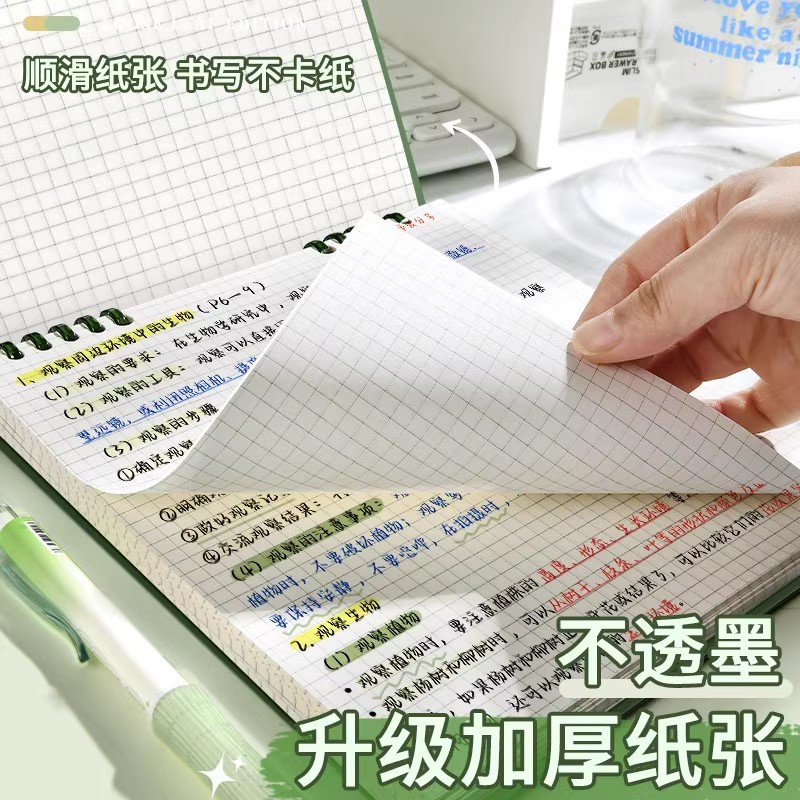 上翻活页笔记本可拆卸方格本网格本子高颜值初中生专用高中格子小方格方形本复古考研加厚2025新款文具草稿纸