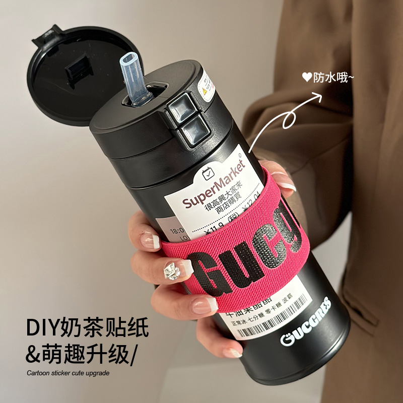 保温杯316不锈钢双饮咖啡杯大容量女高颜值随行吸管水杯情侣杯子