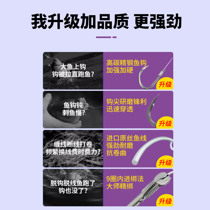 赤袖绑好鱼钩套装全套红袖子线双钩成品防缠绕鱼线鱼具钓鱼用品