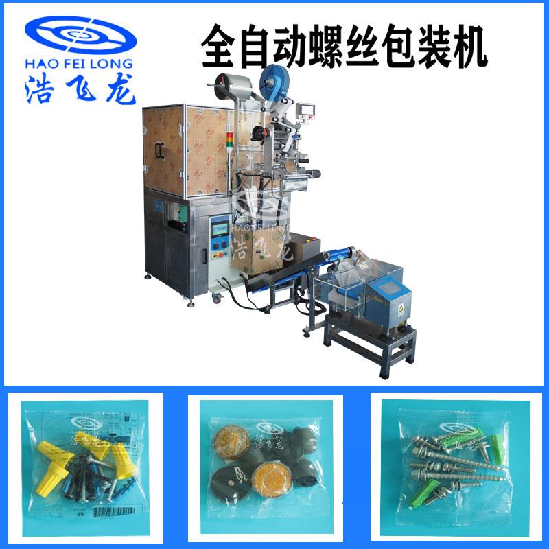 全自动振动盘包装机锁扣铁片合页自动包装机链斗五金螺丝包装机