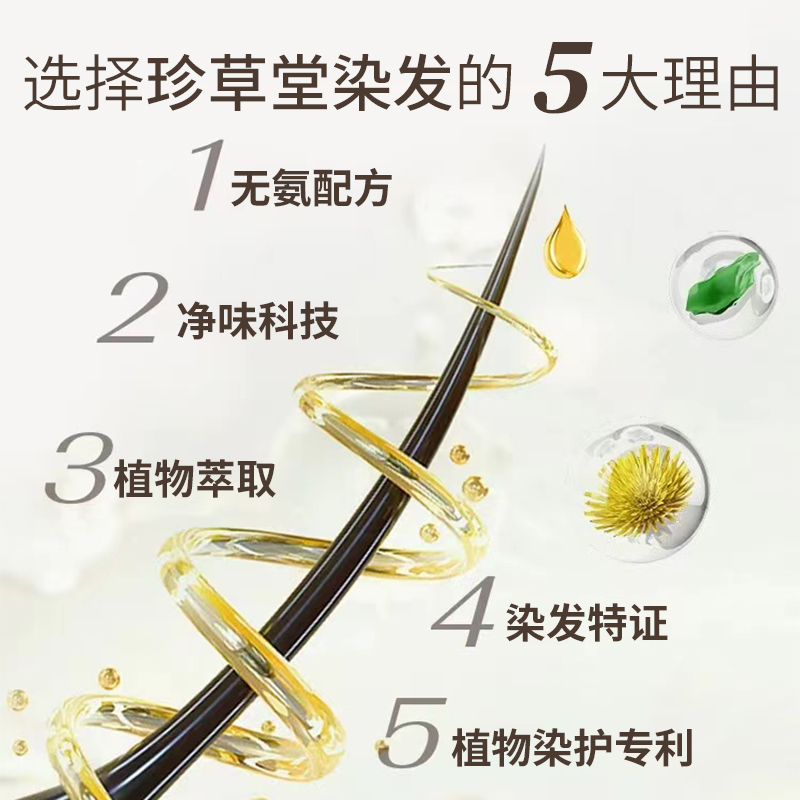 珍草堂升级更植物型染膏头皮发色萃取补色自然黑颜色染发无氨头发