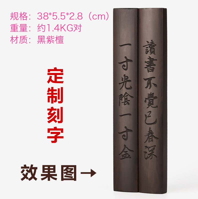 黑檀木大号毛笔镇纸镇尺一对 实木质毛笔字压纸石 红木压书镇 原木纸镇书画国画书法摆件定制刻字