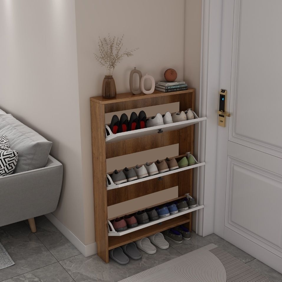 胡桃色实木超薄鞋柜简约收纳超窄鞋架入户门翻斗玄关卧室鞋柜薄款