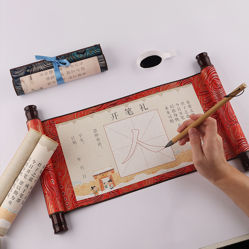 卷轴开笔礼人字帖幼儿园一年级小学生国学启蒙人字贴描红毛笔宣纸