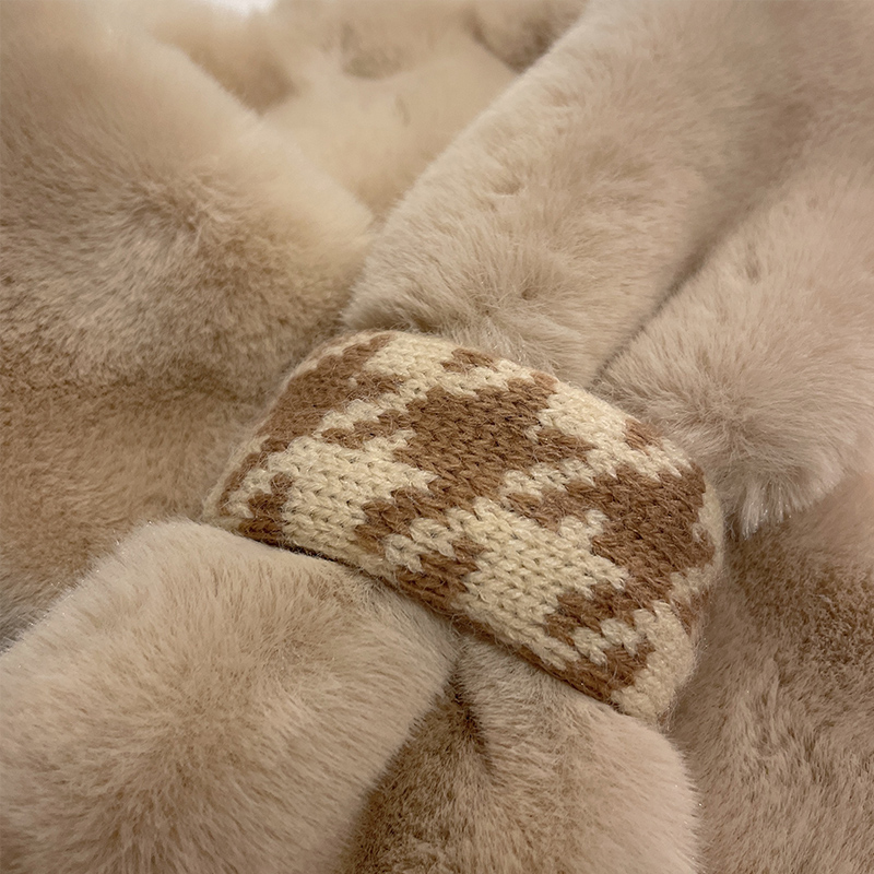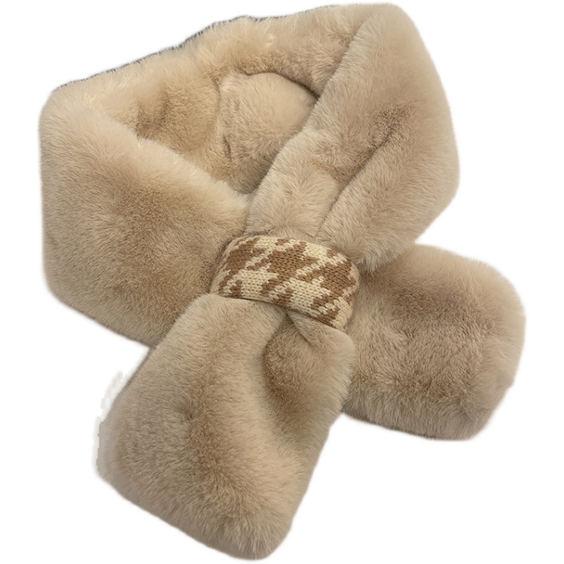 毛绒围巾女款2024新款冬韩系氛围感可爱百搭保暖交叉毛领围脖护颈
