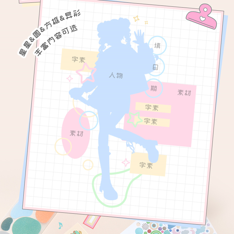 免剪裁2000+素材30张不重复基础色卡多巴胺贴纸手账本素材标记点缀贴装饰手帐DIY咕卡盘台历手机ipad装饰贴纸