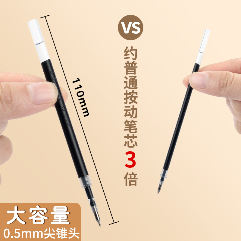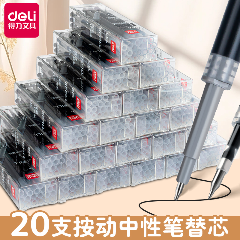 得力按动笔芯0.5mm尖锥头摁压式中性笔替芯弹簧子弹头黑色红色签字圆珠笔考试水笔芯ST头加强型针管碳素速干