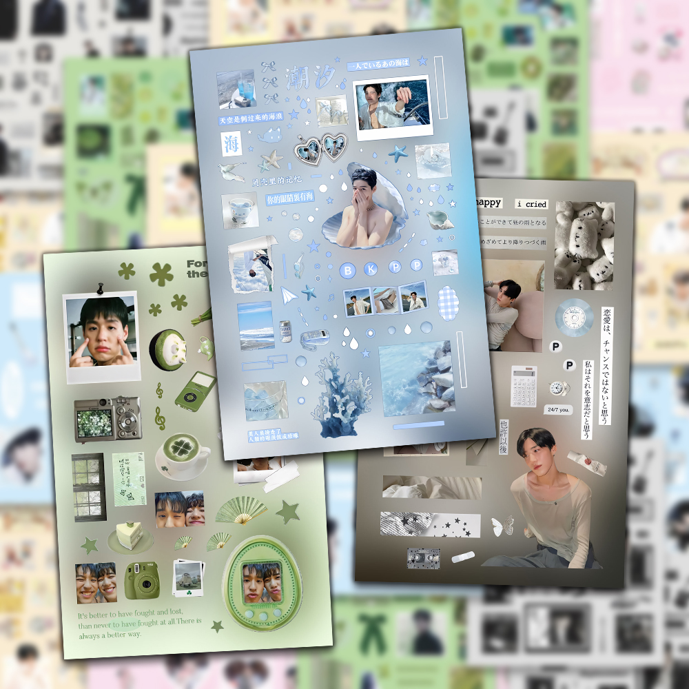 新款bkpp拼贴素材贴纸ins高颜值他泰马群耀林祎凯饭制手账贴画