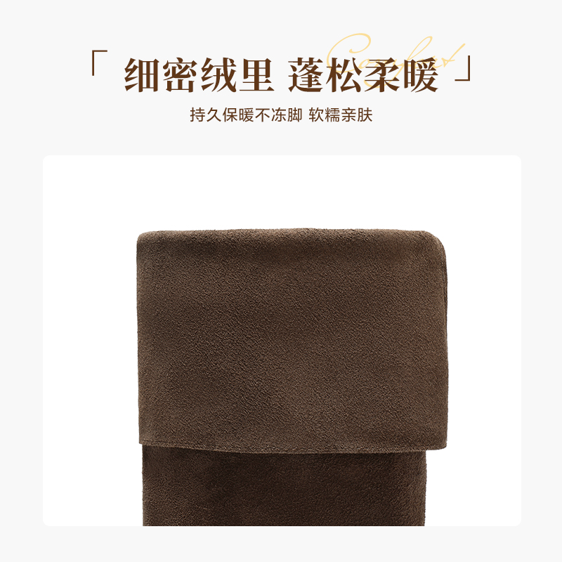 吴千语同款百丽荒野来信西部牛仔堆堆靴新款棉鞋长筒靴3QFC3DG5预