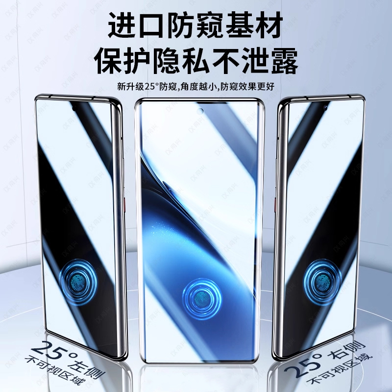 适用vivox200手机膜x100防窥陶瓷s19pro秒解指纹90钢化膜新款x50全屏s16防偷窥iqoo11pro保护s12pro贴9曲屏80