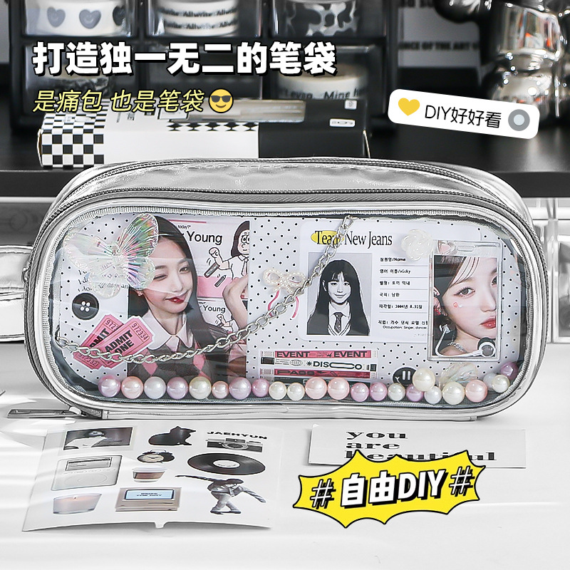 透明笔袋大容量初中女生高颜值ins风韩版铅笔盒2025新款女孩文具盒拉链款可视窗口多功能吧唧谷子痛包文具袋