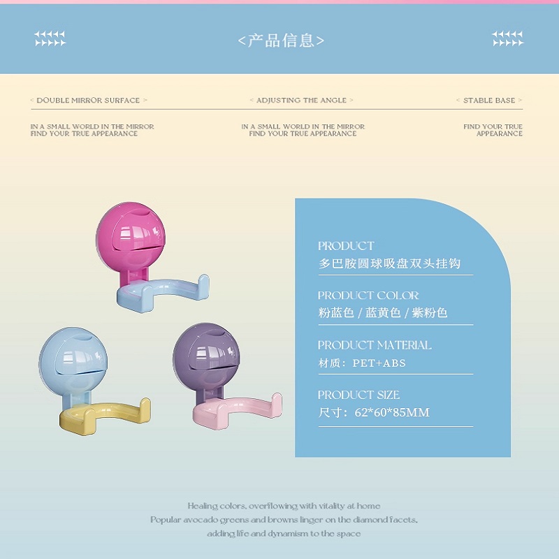 多巴胺双头吸盘挂钩免打孔强力承重粘钩厨房浴室挂洗脸巾抽纸阳台