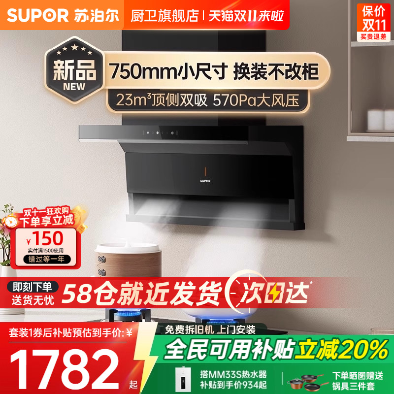 苏泊尔ML15套装抽油烟机燃气灶套餐家用厨房顶侧双吸抽烟机小尺寸