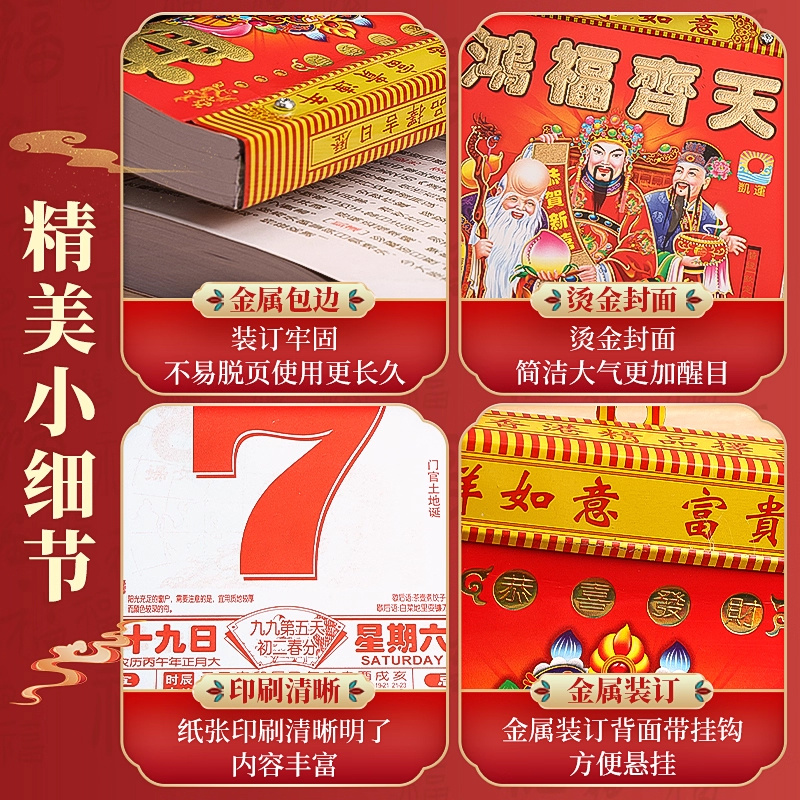 日历2026年老式黄历挂历家用挂墙大号手撕万年历撕历挂式挂牌马年定制一天一张撕历通书传统农历老皇历本香港
