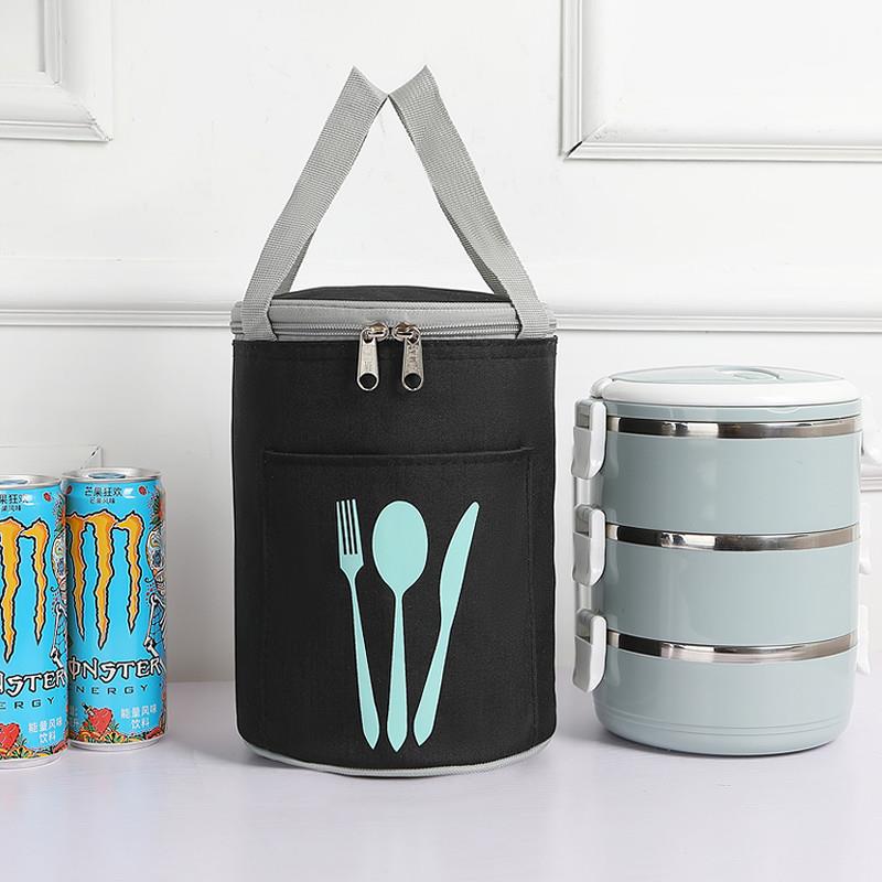 圆形饭盒袋加厚保温包牛津布手提便当包防水小号时尚铝箔保温袋