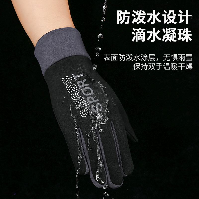 新款保暖手套男女冬季加绒户外运动骑行漏指触屏防水防风骑车黑色
