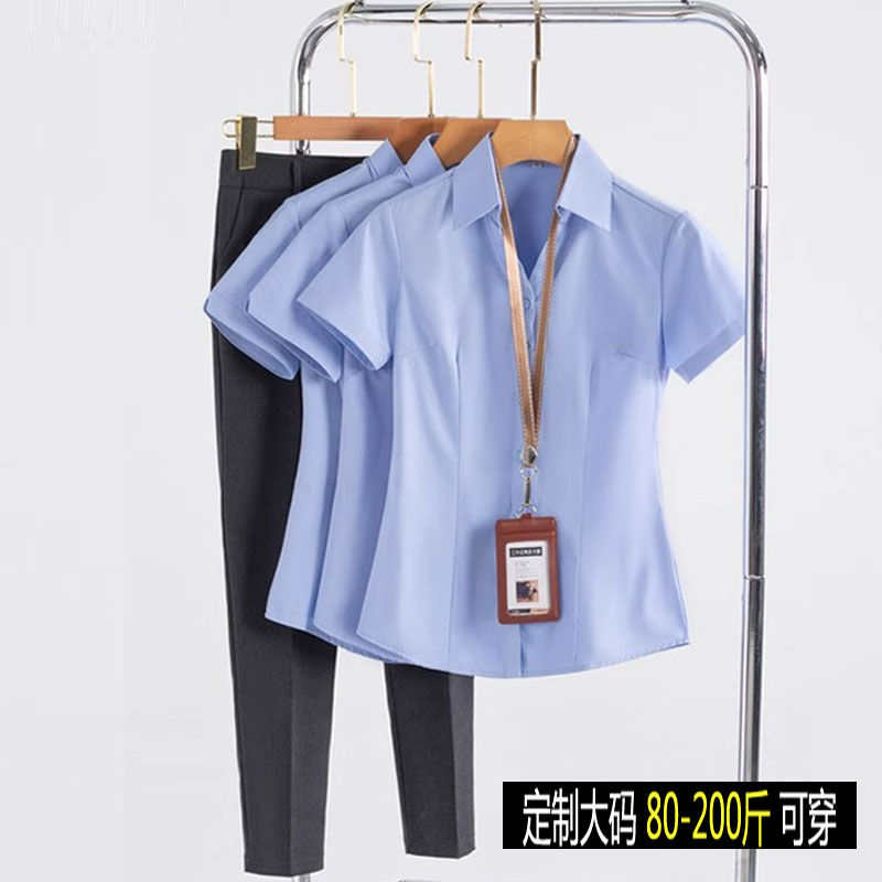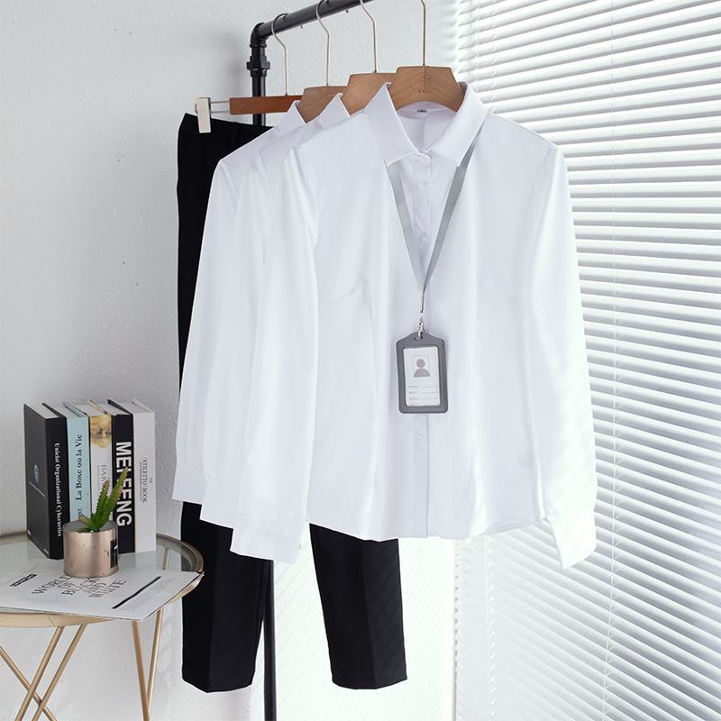 春秋白色衬衫女职业长袖正装气质V领上班面试工作服大码蓝色衬衣
