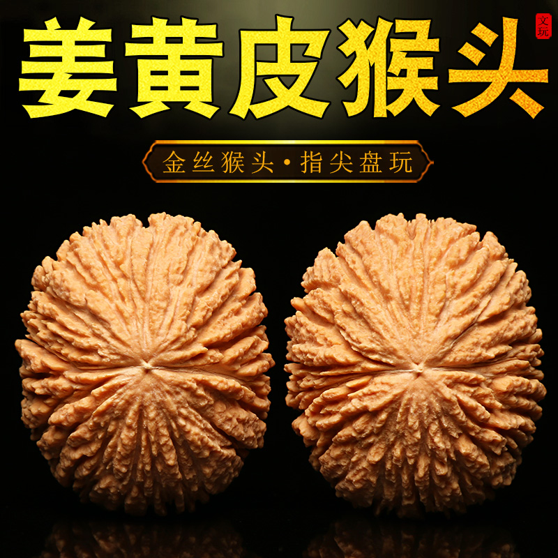 金丝小猴头姜黄皮顺纹文玩核桃手捻把件野外生老树随身盘串原料