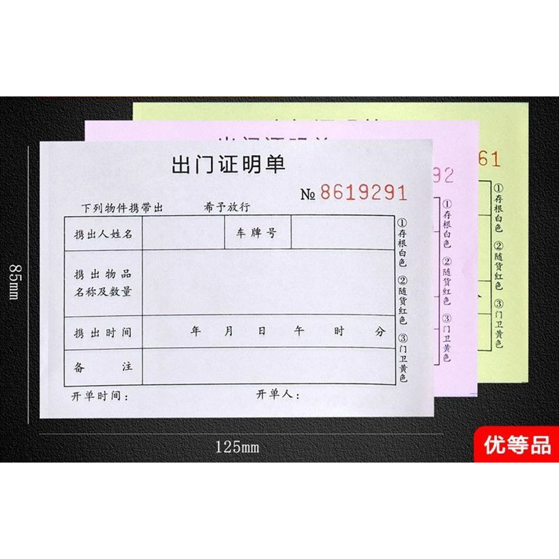 二联出门单证明单2联三联单进出证 出门条物业门卫保安加厚款