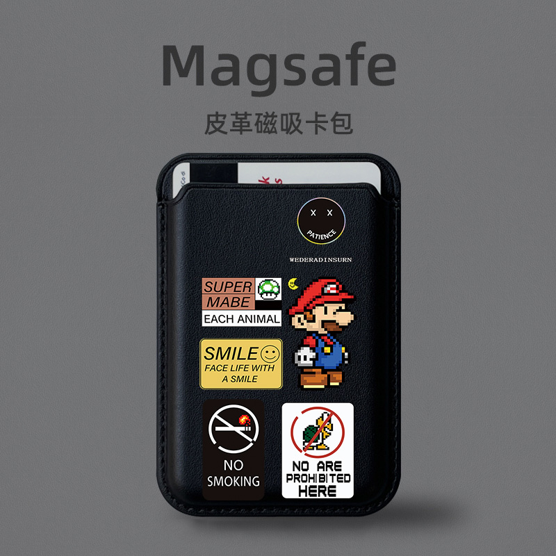 像素马里奥magsafe磁吸卡包适用苹果2024新款iphone16promax手机壳15plus 同款卡套式14皮质配件13mini门禁12