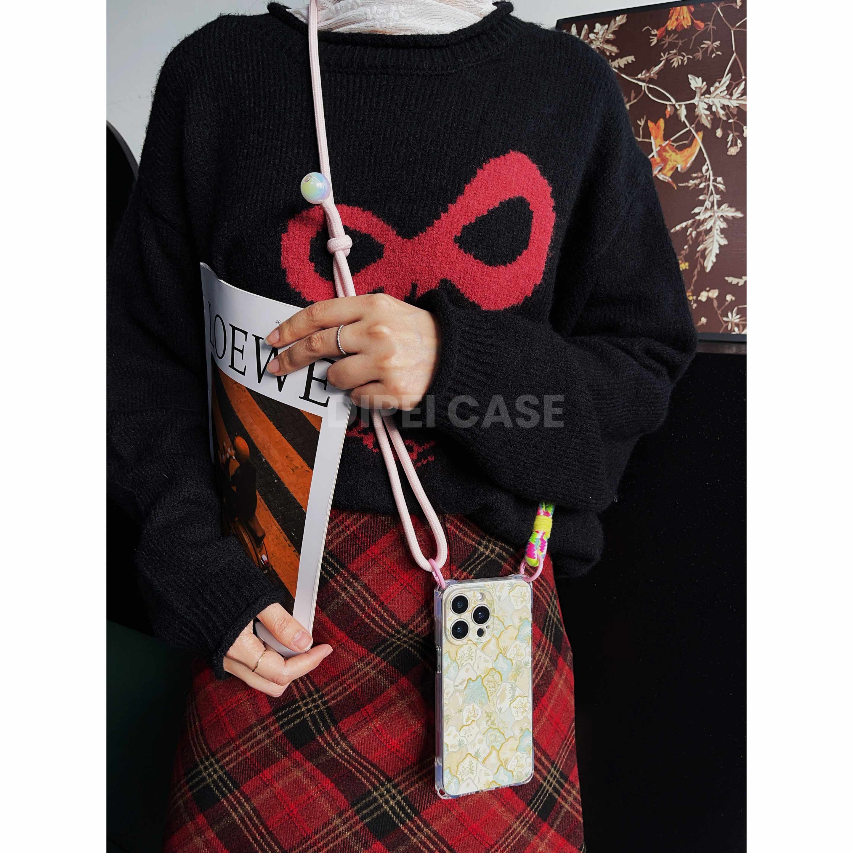 新中式瓷器纹挂绳mate70Pro手机壳适用苹果iPhone16promax华为手提vivox200斜挎背式挂脖nova13小米15复古女