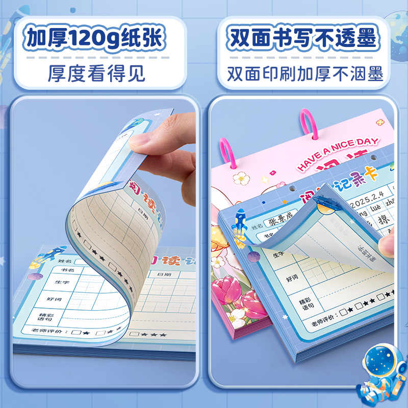 阅读记录卡小学生用阅读卡读书记录卡每日阅读打卡记录本一年级二年级三好词好句摘抄本积累专用本读书笔记本