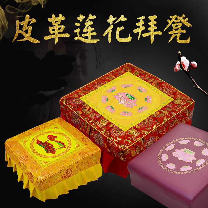 皮革拜凳莲花拜垫拜垫家用跪拜实木跪凳蒲团打坐垫椅磕头跪拜垫