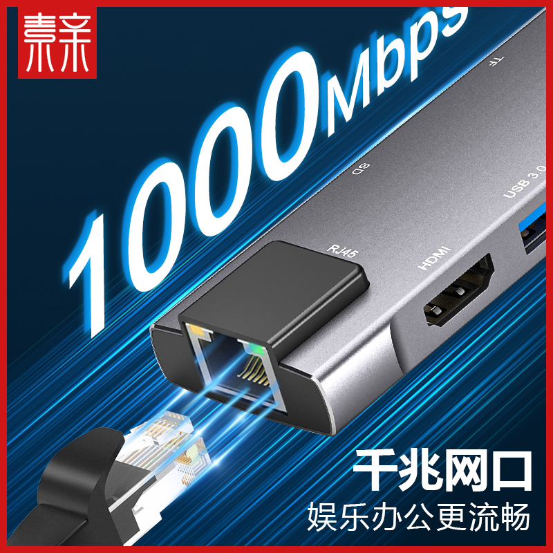 拓展坞typec扩展USB分线器转接头千兆网线口直播投屏吃鸡HDMI多接