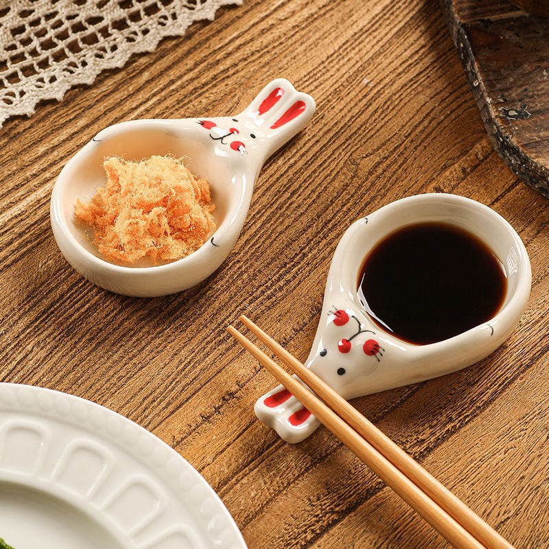 新陶瓷小碟子可爱加厚多功能筷子托家用味料碟火锅U蘸料碟创意酱