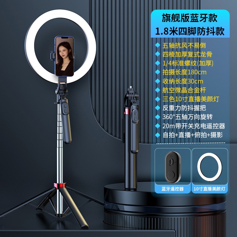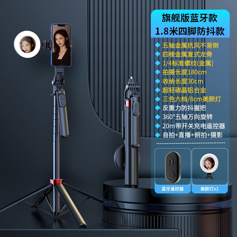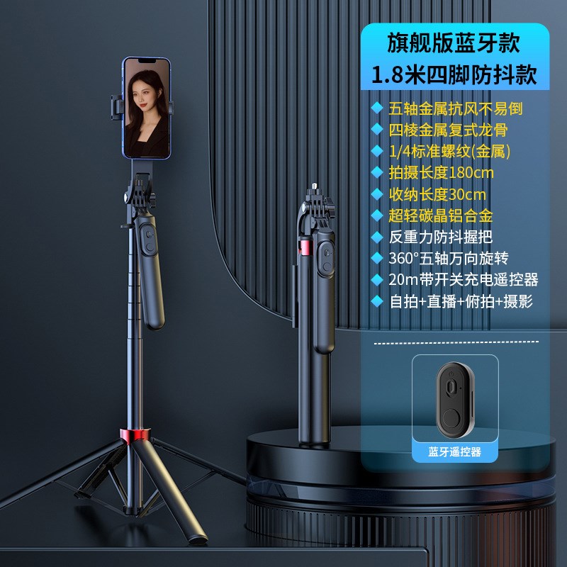 [四轴四脚架】2025新款自拍杆三脚架手机通用自拍神器360度旋转手持防抖旅游便携拍照直播支架多功能一体式24