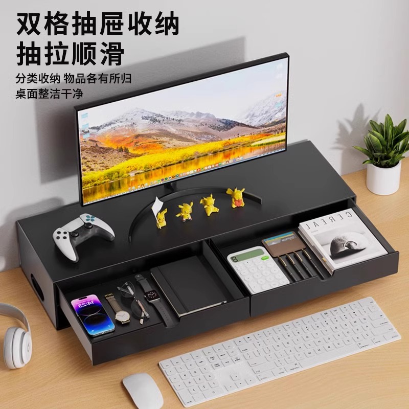桌面显示器收纳置物架台式电脑办公室增高架抽屉式收纳架抽拉放置