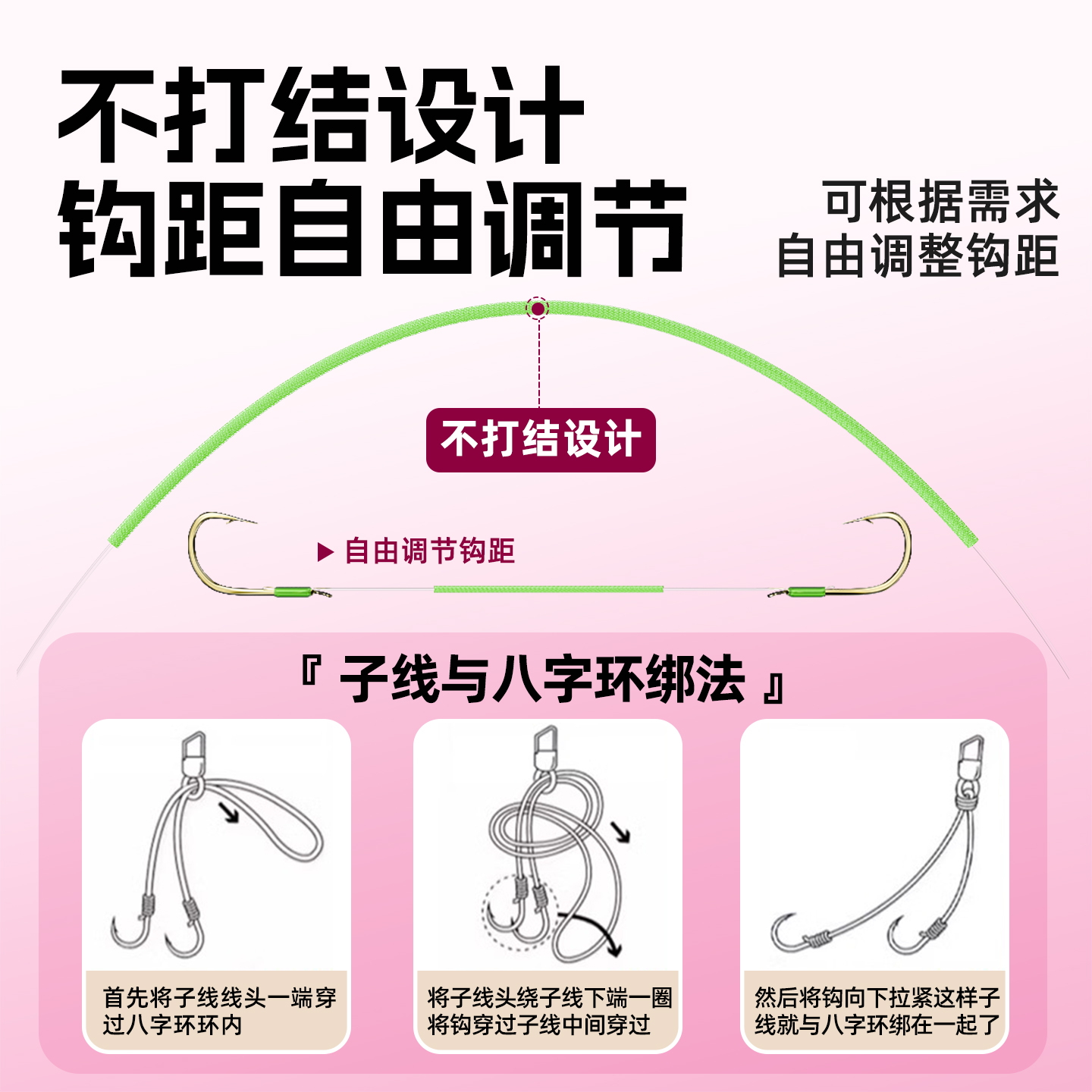 赤袖绑好鱼钩套装全套红袖子线双钩成品防缠绕鱼线鱼具钓鱼用品