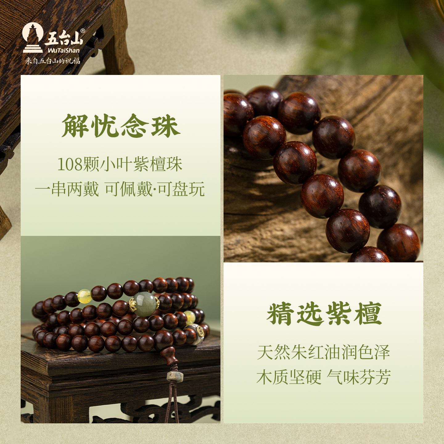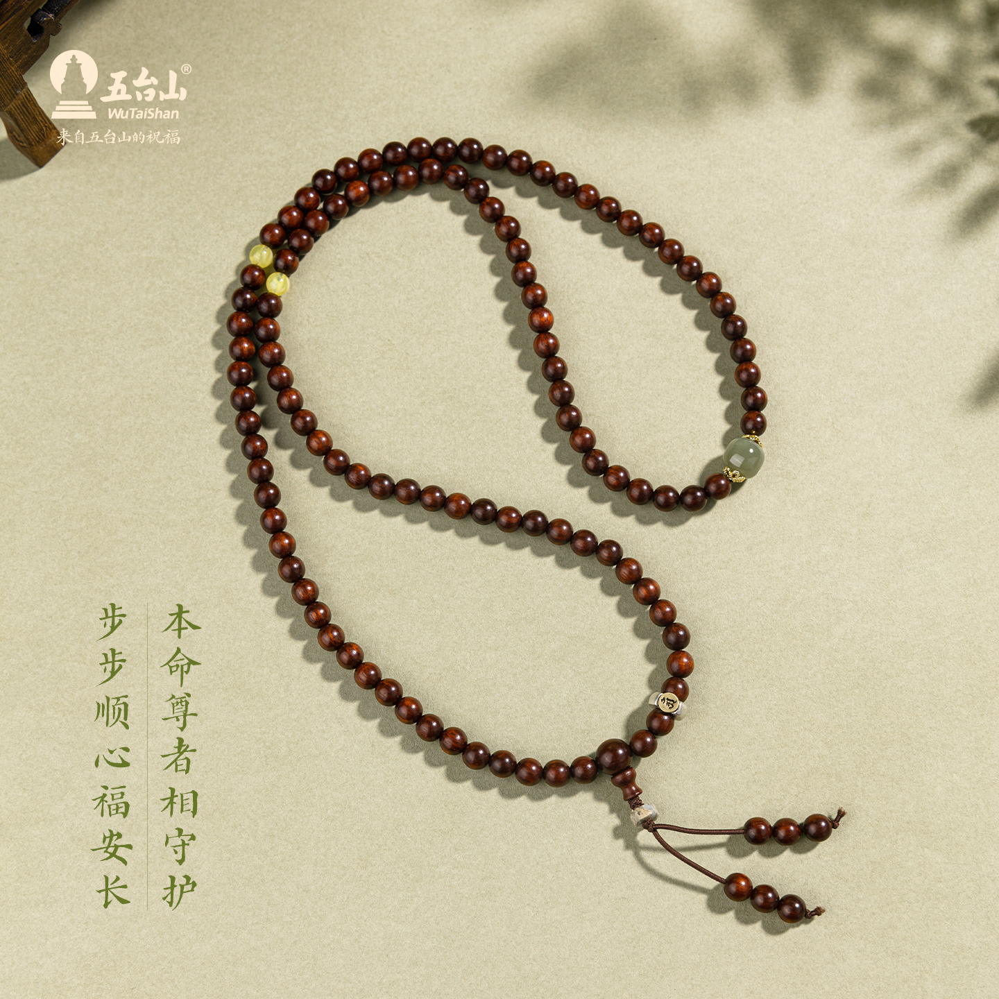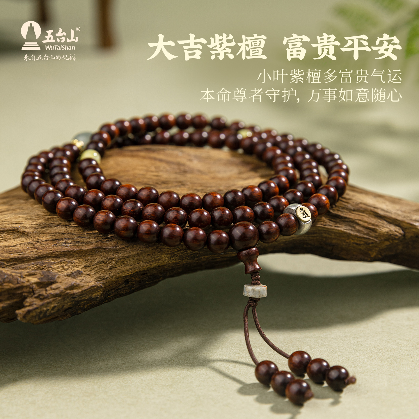 五台山小叶紫檀108佛珠手串本命佛和田玉蜜蜡转运珠盘玩木质手链