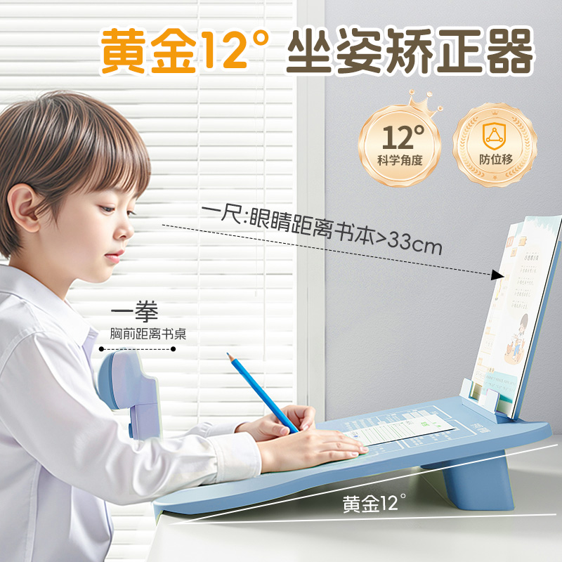猫太子12°坐姿矫正器儿童写字姿势纠正神器桌面款小学生黄金12度防近视支架写作业学习书写防低头防驼背提醒