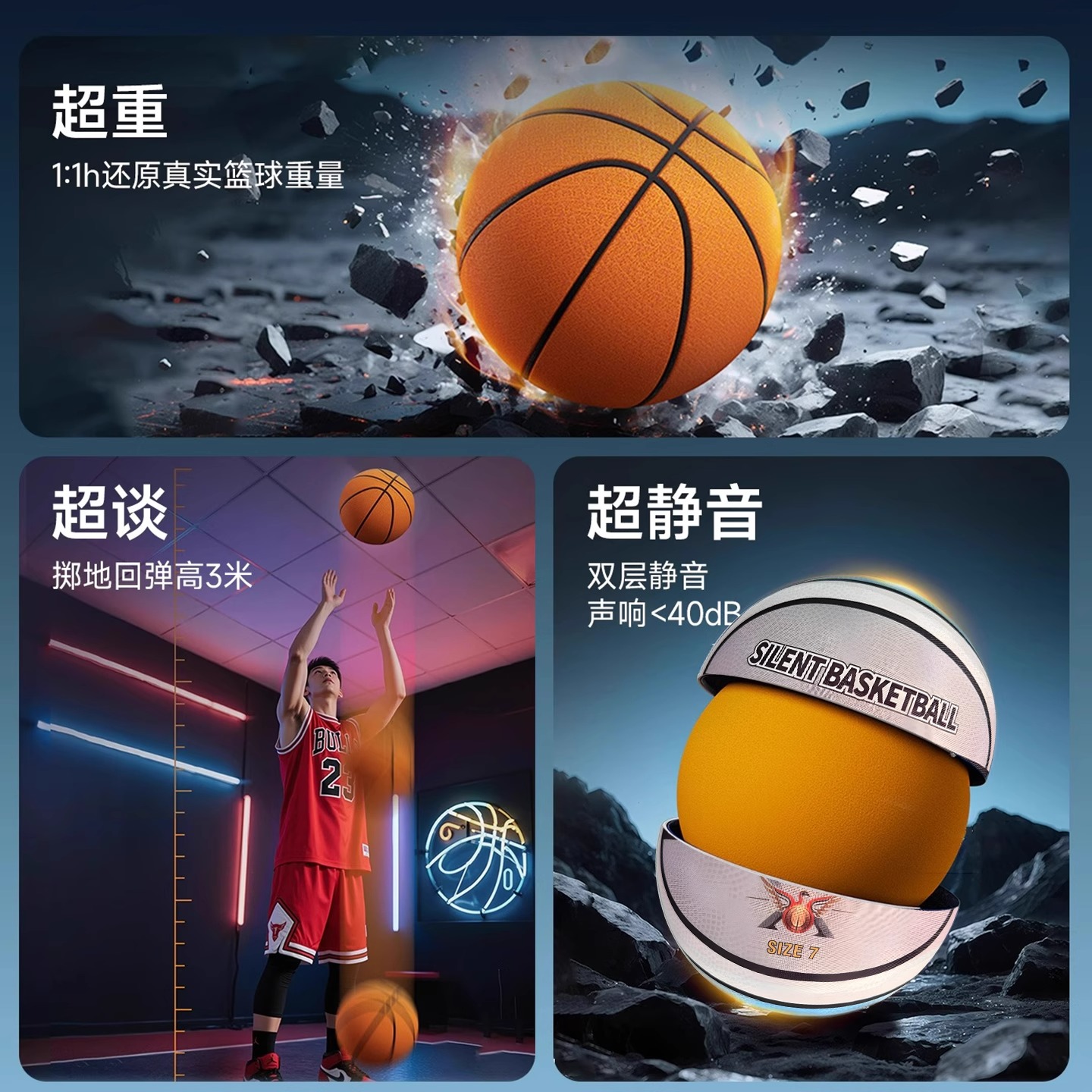 加重静音篮球儿童高弹力室内不掉渣5号成人7号专用室外带篮筐蓝球