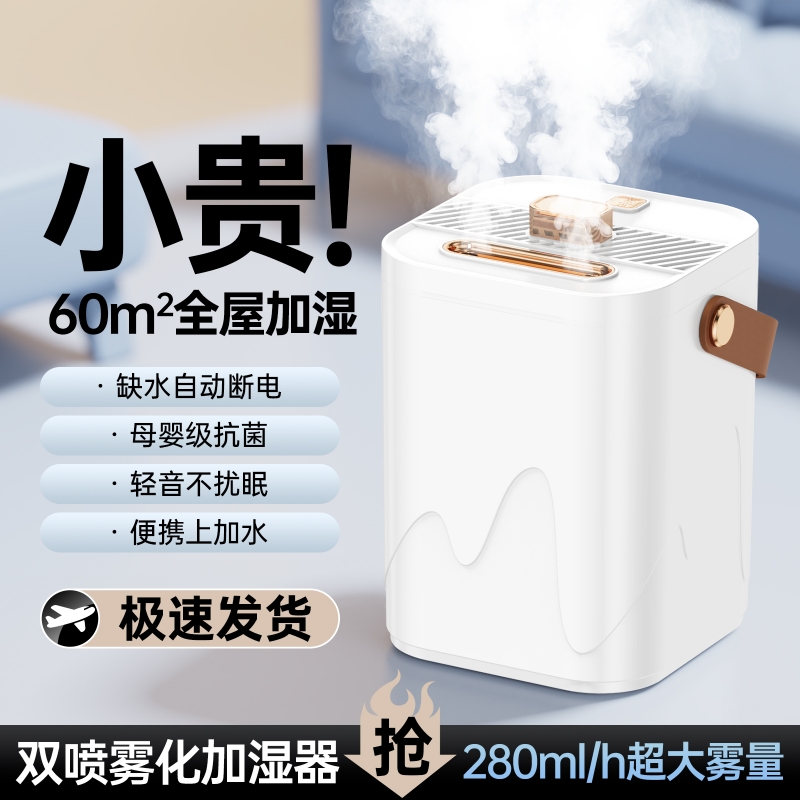 三喷头加湿器静音大雾量喷雾无水断电卧室桌面补水香薰夜灯加湿