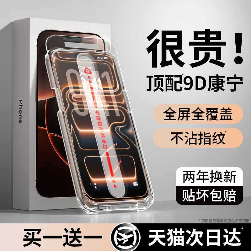 无黑边真防摔适用苹果17新款iPhone17Pro钢化膜16ProMax手机保护膜15pm全覆盖抗反射ip14防窥13无尘仓贴膜12