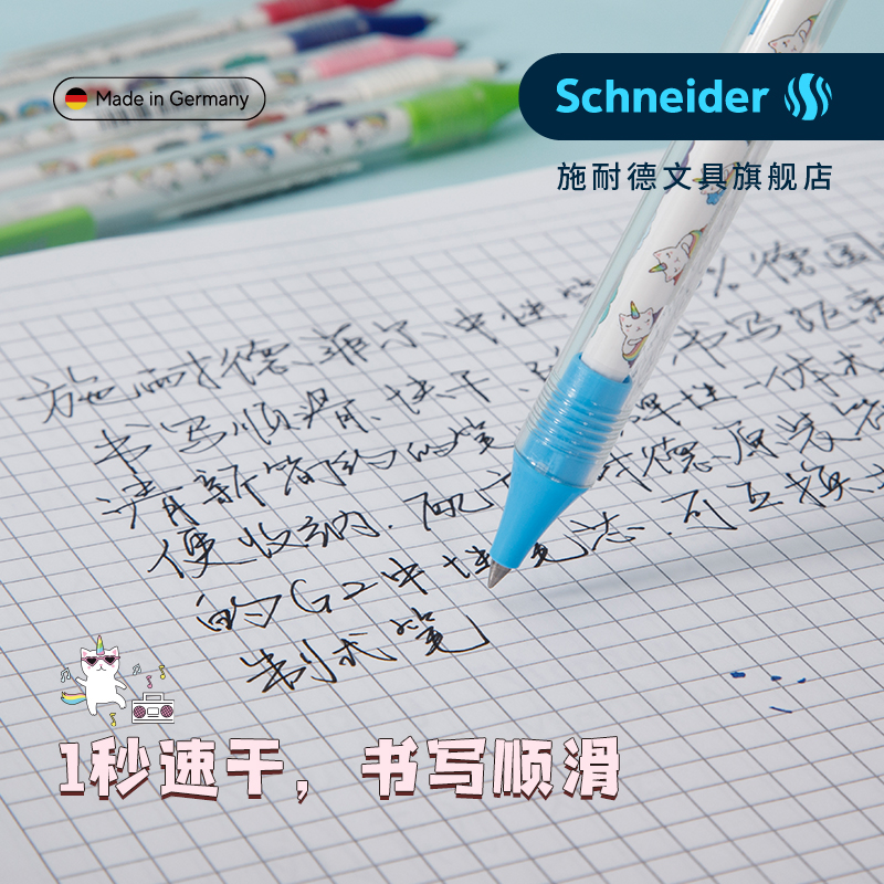 【1秒速干】施耐德中性笔菲尔心趣德国进口Schneider学生专用刷题笔考试透明黑色笔芯0.5按动水笔顺滑走珠笔