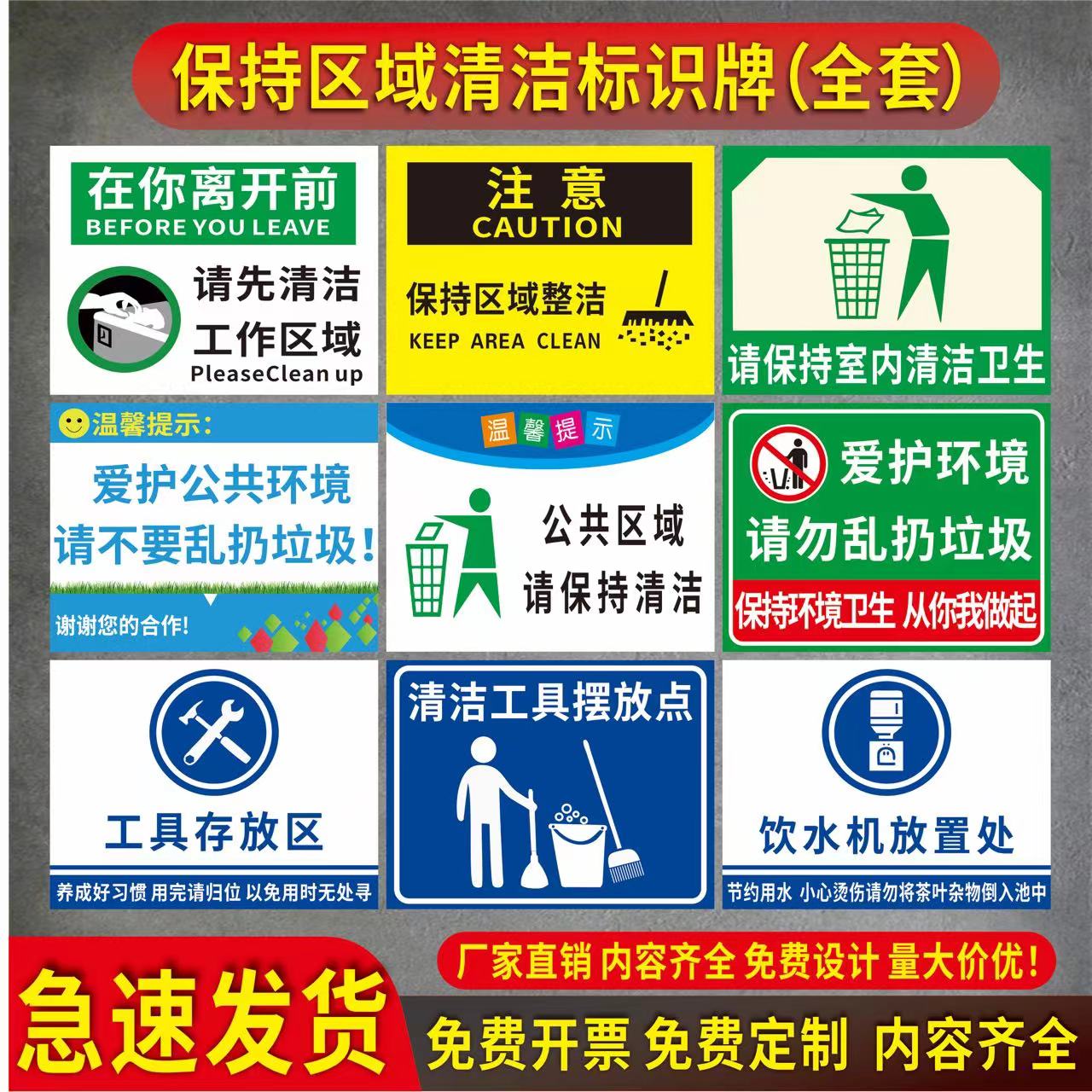 请保持的工作区域室内清洁是你工作的一部分提示牌温馨提示爱护公共卫生下班自觉整理工作区5s6s管理责任标牌