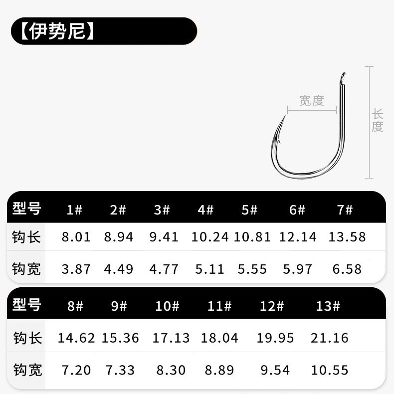 伊势尼散钩100枚高碳精钢鲤鱼草鱼青鱼鲢鳙有刺散装鱼钩大物钓具