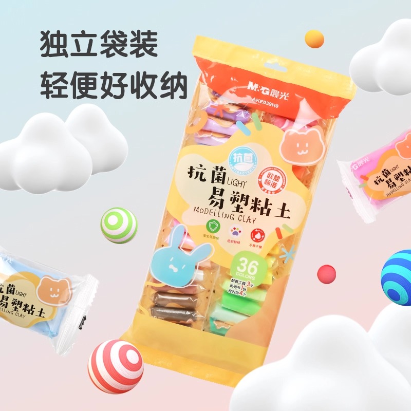 晨光抗菌超轻黏土儿童24色12色安全放心彩泥易塑橡皮泥食品级幼儿园手工粘土玩具diy材料包36色白色大包套装