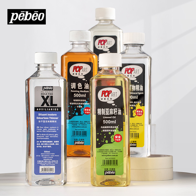 法国贝碧欧油画颜料松节油调色油清洗剂稀释剂去污洗笔液小瓶子上光油500ml媒介剂调色剂油画工具油画材料