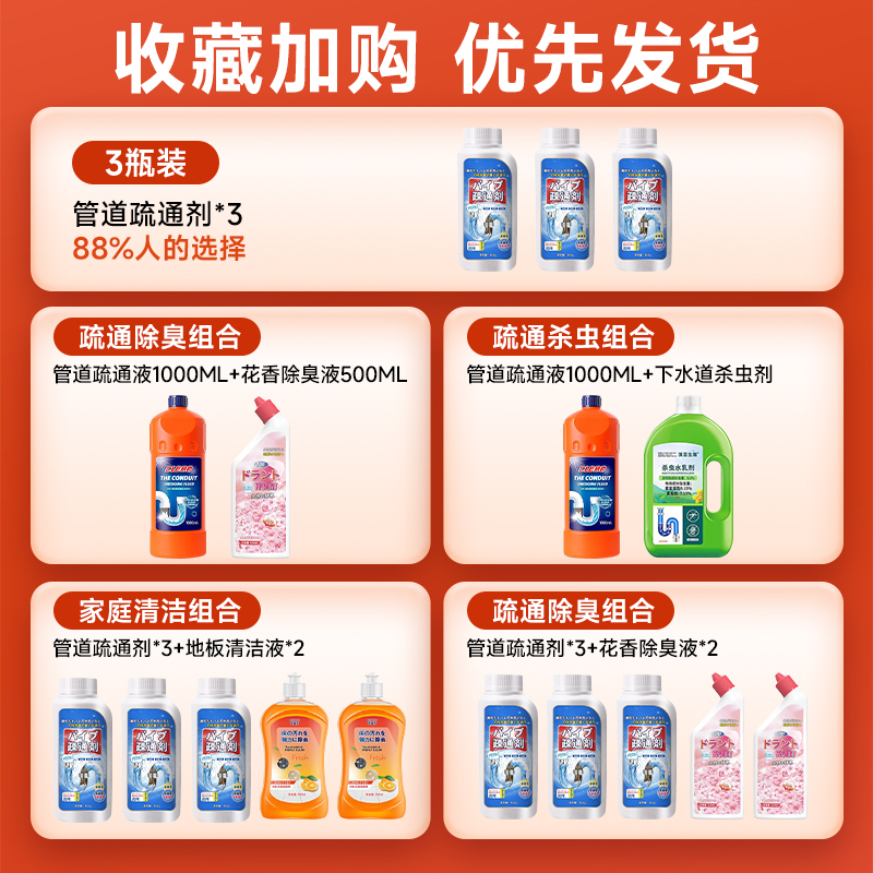管道疏通剂强力溶解通下水道厕所马桶堵塞厨房油污液体万能厨房粉