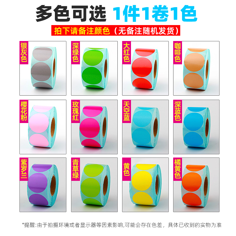 彩色圆形三防热敏标签纸10 15 20 25 30 35 40 45 50 60 70不干胶圆点条码打印机分类标记可粘贴纸红黄蓝绿